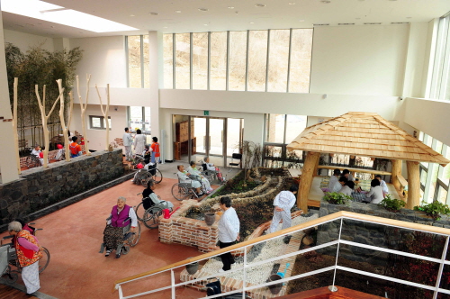 예전의 나의 블로그에서 <무서운 병원>이라는 주제를 가지고 글을 시리즈로 올린 적이 있다. 지난 2013년에 “자연을 담아 치유하는 병원들”이라는 주제로 당시 조사했던 국내외 병원의 사례와 내 경험을 언급한 적이 있는데, 오래전부터 병원 공간의 치유 기능에 대해 고민을 해왔다. 특히 실용적인 기능성을 극대화하는 것 말고도 자연의 긍정적인 힘을 치유의 환경으로 활용하는 것을 꾸준히 연구해오던 중 몇 해 전 시골 마을의 치매 노인을 대상으로 치유 정원을 디자인하게 된 기회가 온 것이다.