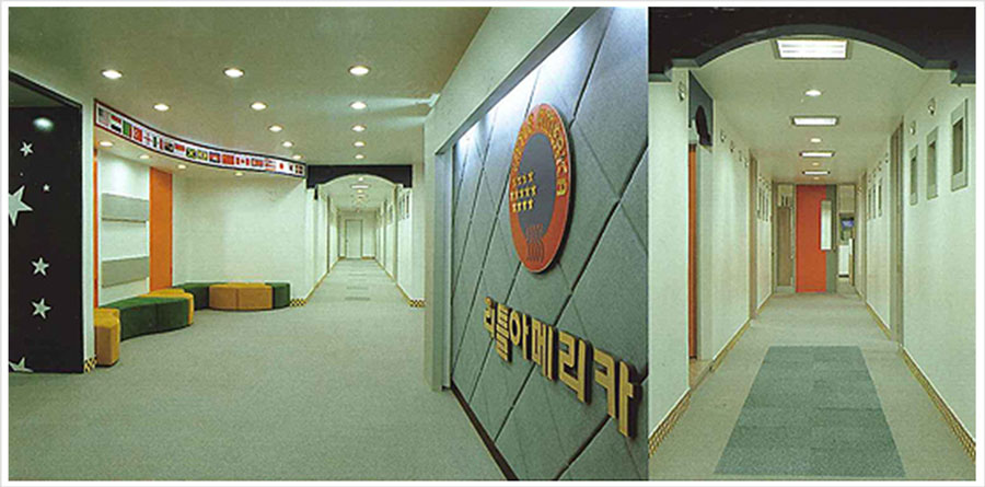리틀아메리카는 아이들이 가진 동화적인 원색들을 과감하게 사용하여, 단순한 학습공간에 재미를 가미한 에듀테인먼트 공간으로 디자인되었다. 또 미국 성조기가 가진 빨강과 파랑의 보색 대비를 직간접적으로 시도함으로써, 영어의 상징적 의미와 함께 좀 더 교육적으로도 역동적 사고를 스스로 할 수 있게 하는 감성 유도를 적용하고 있다.
