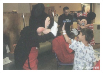 위의 사진은 미국의 플로리다 디즈니 아동병원의 소아·청소년과병동의 모습이다. 그 병원의 팀버릴(Tim Burrill) 서비스 지원 및 건설팀 부사장의 인터뷰 내용에서 (월간 디자인 2012. 9월) 그는 " 사용자를 배려한 디자인이 가장 중요하다"라고 말하면서 모든 직원과 어린이, 그 가족을 처음 만났을 때 웃으면서 본인 소개를 하고 인사하기를 실천하면서 디즈니 병원에 환자가 머무는 동안 그들이 경험할 수 있는 특별함을 찾아 줄 수 있게 하기 위해 전 직원들을 대상으로 이륙 교육(on boarding)을 실시한다고 한다. 이로 인해 환자들의 만족도가 전 미국을 통틀어 어린이 병원 중 최고의 수준이다.