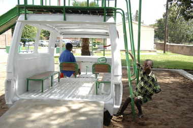 시선을 고정했던 구급차의 미끄럼틀이 다분히 어느 병원의 한 배경처럼 보여 유심히 보게 되었는데 사진처럼 조촐해 보이는 느낌의 그 의도 또한 단순해 보인다. 버려진 엠블란스를 놀이터에 가져다 놓아서 아이들도 병원에 드나드는 것이 자유롭고 기다리는 동안 아이들이 이곳에서 놀면서 치료받는 것에 대한 두려움이 사라질 것이란 의도이다. 구급차 내부와 외관을 조금 개조하여 좌석을 만들고 윗부분에 미끄럼틀을 추가시킨 아주 간단한 디자인이지만 이런 노력은 누군가가 쉽게 할 수 있을 것 같기도 하다. 그러나 진작은 이런 작업에 손을 대기가 쉽지만도 않다.