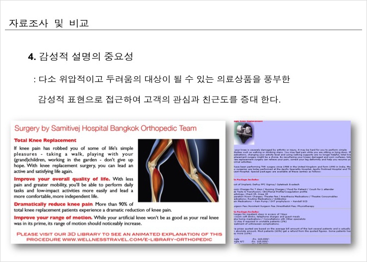 위의 자료에서 나온 설명처럼 의료상품을 소개하는 것에 더욱 친절하고 감성적인 표현으로 접근하는 방법으로 외국에서의 환자들이 이 병원을 찾게 하는 가장 매력적인 이유라는 생각이 들었다.