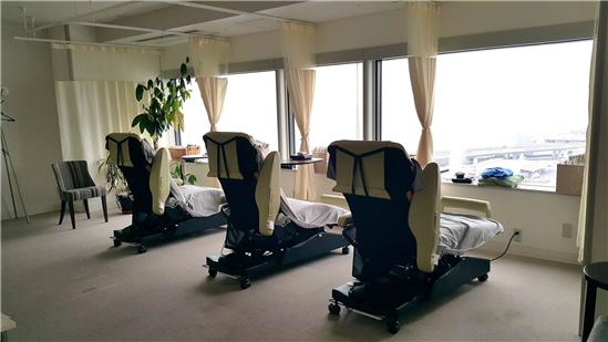최근 일본 오사카공항 근처에 위치한 IGT 병원을 벤치마킹하게 되었다. 최근 회사의 프로젝트 중 하나가 인터벤션 병원을 설계하는 것인데, 이번에 다녀왔던 이 병원은 많은 부분에 있어 참고가 될 만한 사례들이 있었다. 병원은 암 말기 환자가 치료를 받도록 최적화된 환경으로 설계가 된 곳이다. 그래서일까. 병원의 위치부터 범상치 않았다. 오랫동안 종합병원에서 권위자로 일하셨던 병원장님 호리 선생은 환자들이 창밖에 펼쳐진 넓은 태평양 바다를 바라볼 수 있는 곳에 병원을 지었다고 했다. 바다를 바라보며 치료를 받을 수 있도록 높은 빌딩에 병원의 위치를 선정한 것이다.