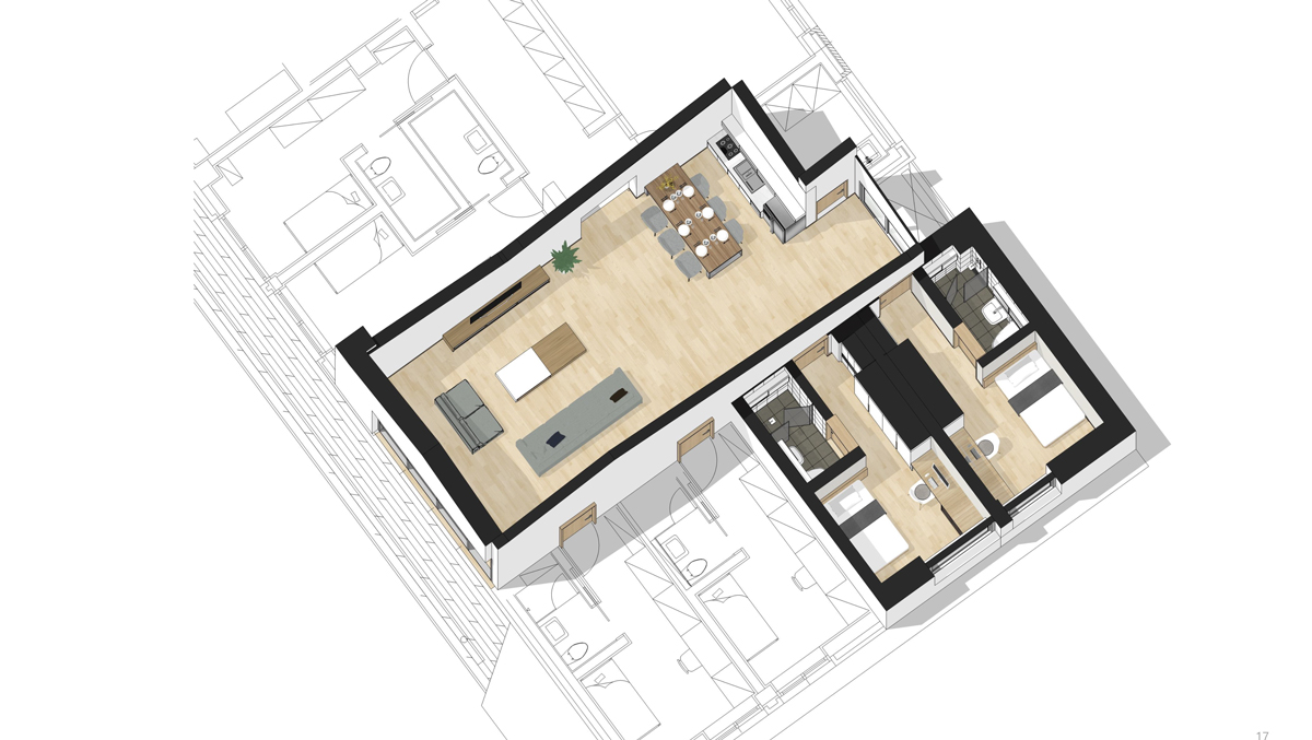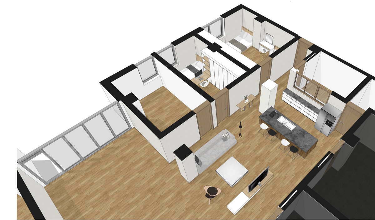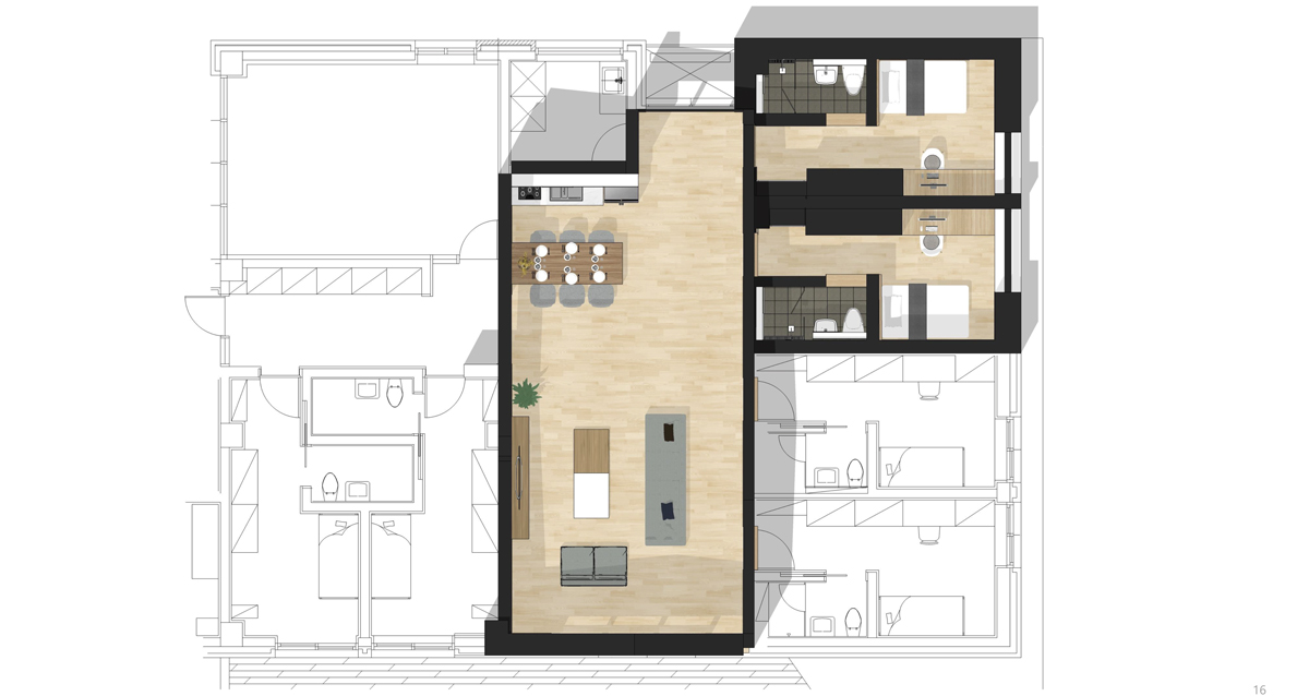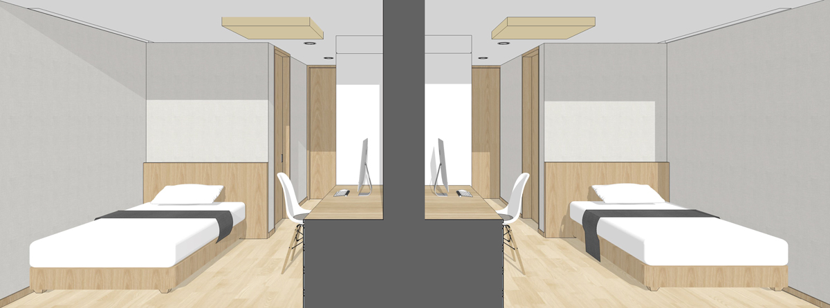 시설의 주요 기능은 수녀 생활공간, 미혼모자의 생활공간 크게 두 가지로 나뉩니다. 수녀의 생활공간에서는 주로 일과 후, 주말 등에 수녀들이 생활할 수 있는 공간으로 현재 4명의 수녀가 생활하고 있으며 2명의 게스트룸을 추가로 설치할 계획입니다. 미혼모자 생활공간은 출산 전, 혹은 출산 후 미혼모자가 생활할 수 있는 시설입니다. 기본적으로 1인 1실을 기준으로 계획하며 출산 후에는 아기와 함께 한 방에서 생활할 수 있도록 구성하였습니다.