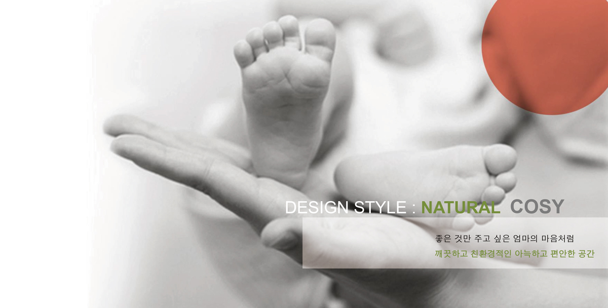 핵심 디자인은 좋은 것만 주고 싶은 엄마의 마음처럼 깨끗하고 친환경적이면서 아늑하고 편안한 공간을 계획하는 것입니다. 따라서 인테리어 디자인할 때 비워내어 가벼우면서도 본래의 색을 이용하고자 하였고, 자연스러우면서도 익숙한 편안함을 주고자 노력했습니다.