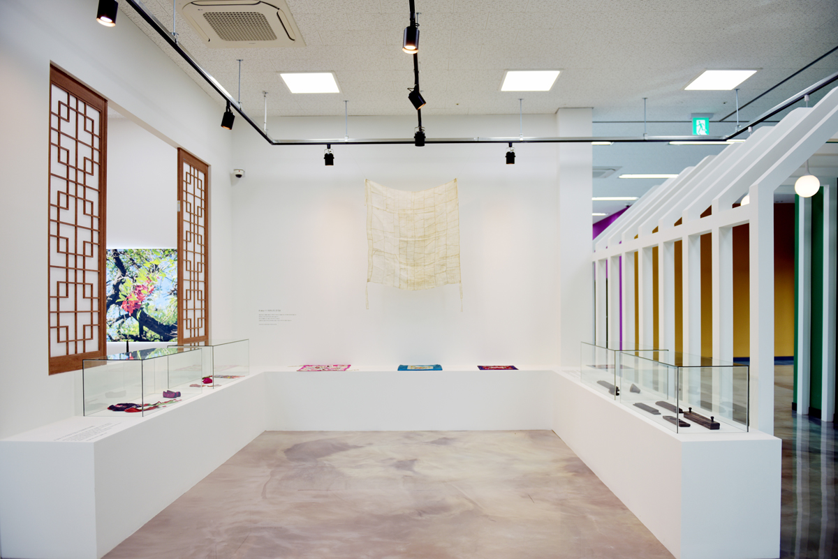 홀 입구에는 ‘Flower, Fabric, Artificial Flowers’ 문구가 새겨졌으며, 다양한 컬러와 꽃 모양의 패브릭을 한데 모아 하나의 작품으로 연출한 점이 돋보인다.