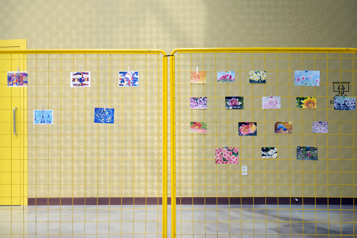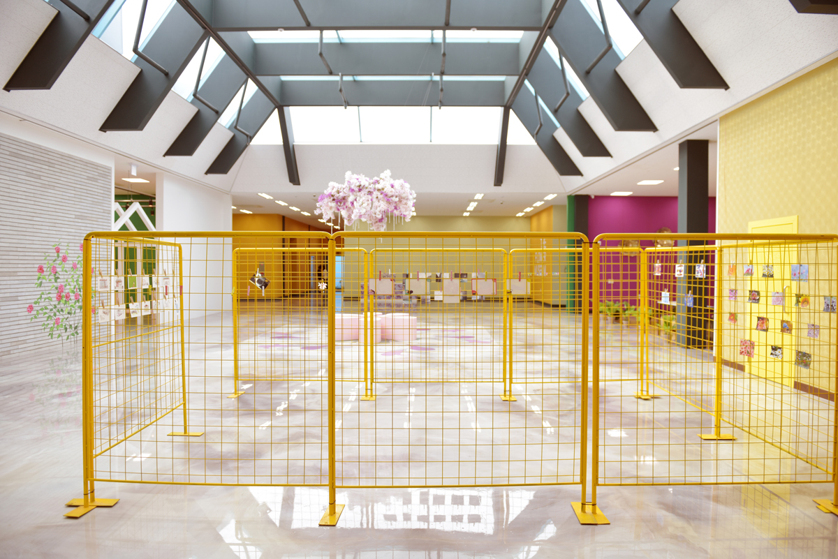 뒤쪽에는 옐로 컬러의 철 구조물 사이에 핑크색 꽃송이로 포인트를 주었다. 차갑게만 느껴졌던 철조망이 밝은 컬러를 입고 따스해졌으며, 꽃송이 연출로 인해 시각적인 편안함을 주도하고 있다. 이곳은 아이들이 그린 작품을 곳곳에 설치할 수 있는 공간으로 활용되고 있다.