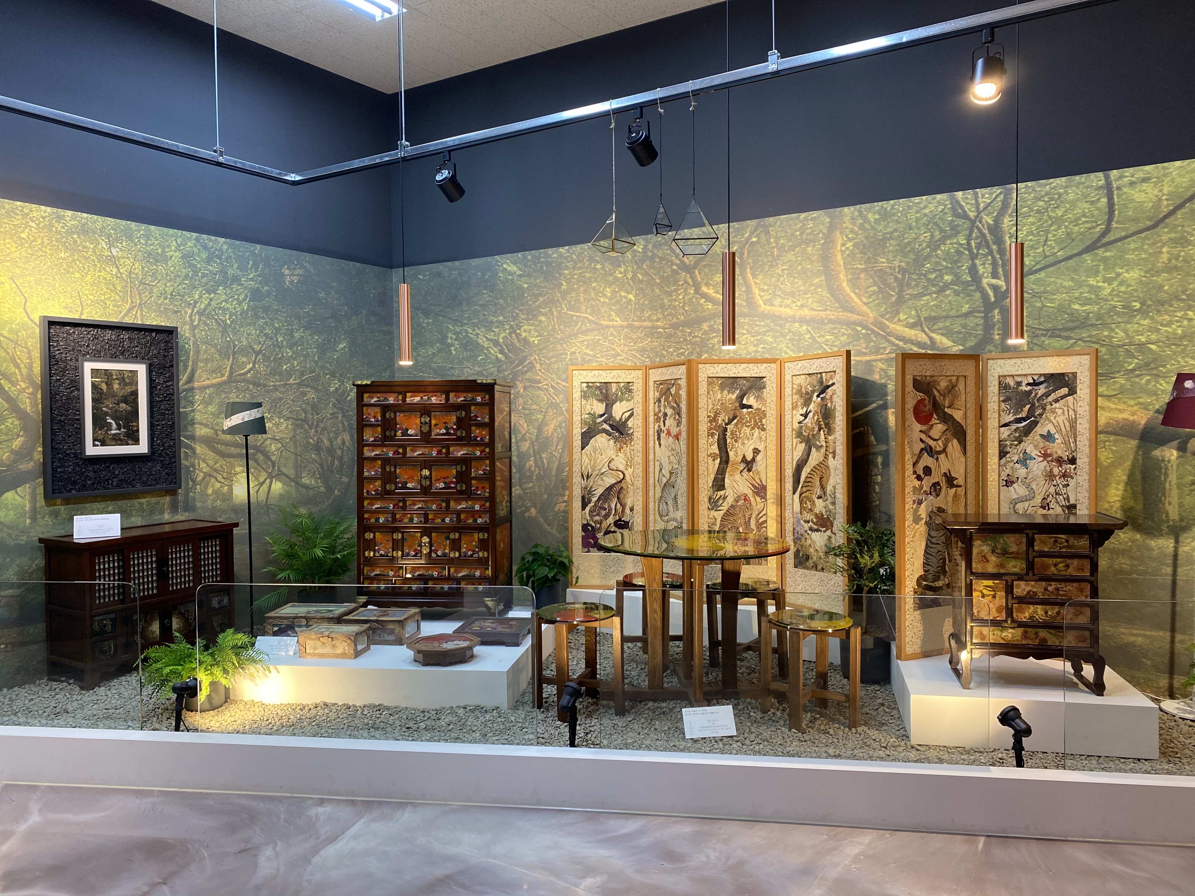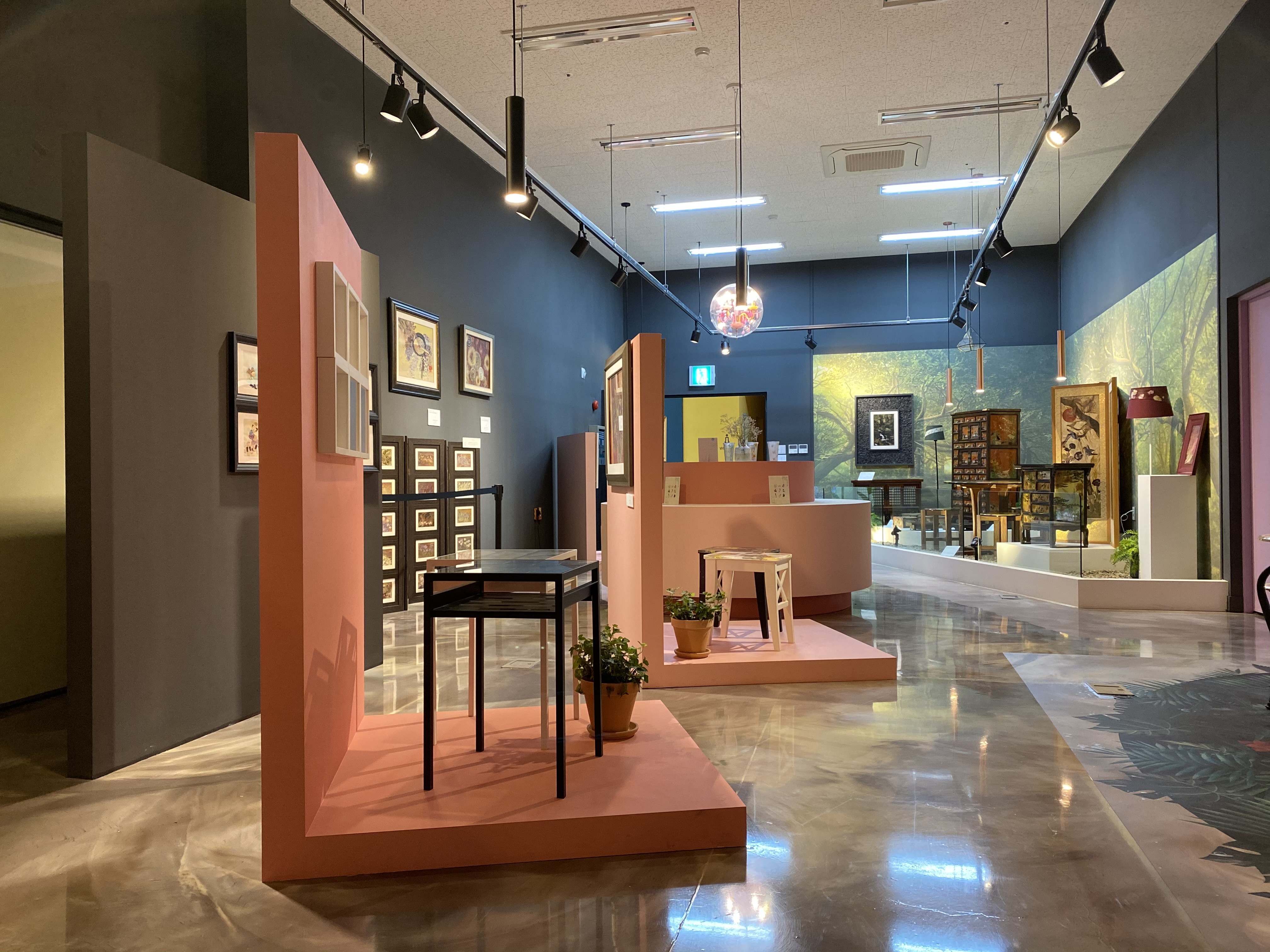 제2전시실은 전체적으로 어둡게 계획했으며, 핑크와 바이올렛 컬러를 포인트로 적용하였다. 더욱이 바이올렛 컬러 도어를 열면 나오는 세미나실이 역시 자연 친화적인 압화 작품처럼 편안하고 싱그러운 오가닉 감성이 느껴지도록 계획했다.