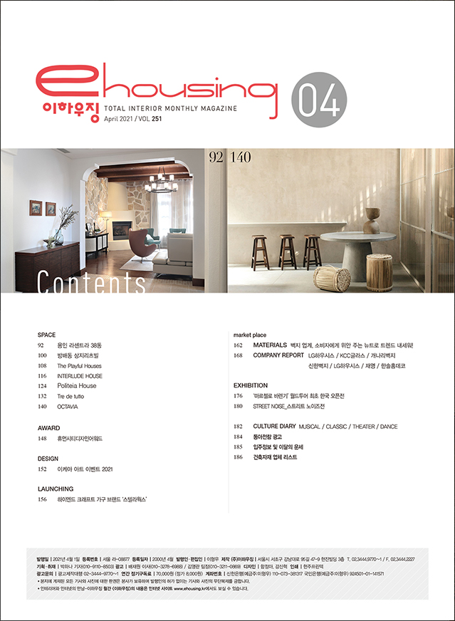 월간 e-하우징 4월 호에 지난달 인테리어 디스플레이 작업을 마친 ‘용인 라센트라 38동’이 소개되었습니다.