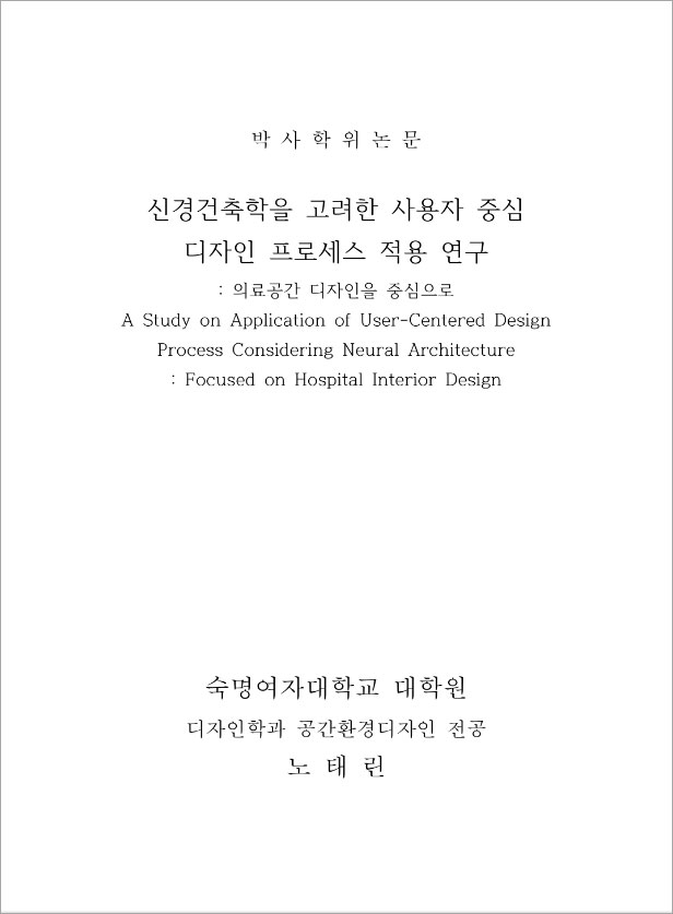 신경건축학을 고려한 사용자 중심 디자인 프로세스 적용 연구 : 의료공간 디자인을 중심으로