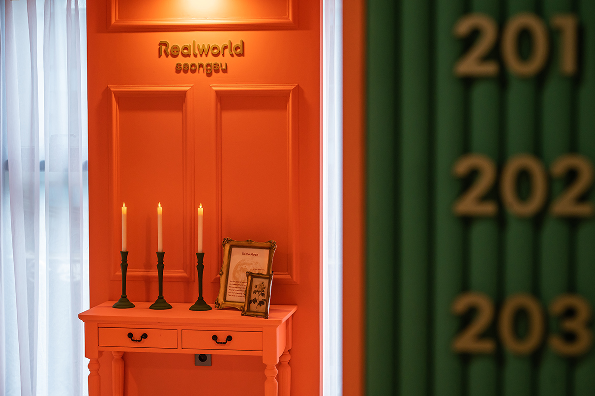 이곳, 리얼월드 성수는 유니크굿 컴퍼니 회사가 마련한 게임 체험 공간으로, 내부 곳곳에 게임 관련 미션들을 마련해놓고 고객들이 1, 2층을 오가며 게임 미션을 풀어나가도록 설정되었다. 감각적으로 꾸며진 공간에서 고객들은 게임을 즐기며 공간이 주는 아름다운 미장센과 디자인 속에서 휴식과 여유, 낭만을 동시에 경험할 수 있다.