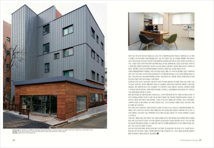 입구에 들어서면 보이는 접수공간은 오랜 추억이 담긴 아이템과 현대적인 아이템의 자연스러운 조합이 인상적이었다. 디자이너는 부자가 대물림하며 책상으로 사용했다는 필경가구를 진열장처럼 연출하여 스테이션을 만들었다. 특히 병원이란 특수 공간 리모델링은 미적 감각보다 기능의 효율성이 중요하고, 쾌적함과 안전함이 무엇보다 중요하기에 낡고 오래된 예전의 마감재는 다 바꾸고, 소품의 활용과 장식을 통해 지난 시간의 흔적을 되살려냈음을 확인할 수 있었다.