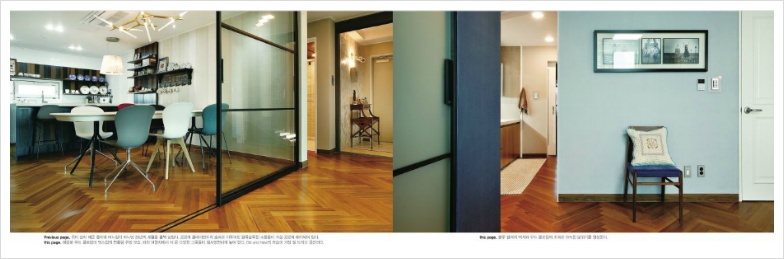 공간을 바꾸고 새롭게 변화시킬 때 가장 중욯나 부분은 바로 '어우러짐'일 것이다. 과거와 현재, 모던과 전통, 클래식과 화려함, 질서와 무질서 등 각기 다른 스타일의 조화를 이루며 새로운 공간을 창조한느 것이 요즘의 트렌드다. 특히 질서정연한 움직임들과 틀에 박힌 고정관념을 살짝 비틀면서 나름의 여유를 갖고 소소한 즐거움을 찾는 일이 우선시 되고 있다. 이렇듯 내가 행복해지기 위한 다양한 노력들은 인테리어에서도 기존의 규칙을 벗어난 새로운 차원의 공간을 탄생시키고 있다.
