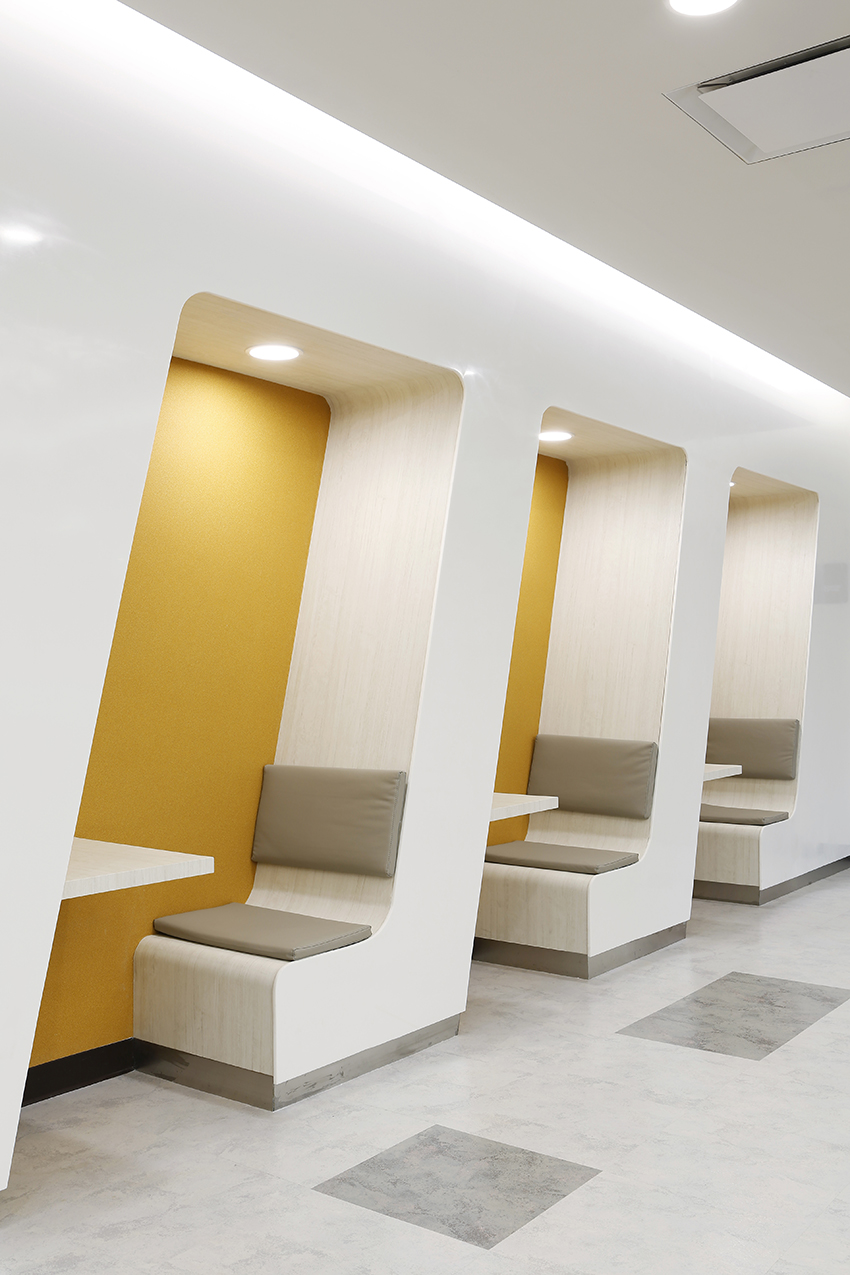 연세암병원은 '치료를 넘은 전인적 진료 서비스를 제공할 것'이라는 목표입니다. 특화 부분 디자인과 전체 컨셉트 가구 자문을 통해 암병원이 가질 수 있는 우울한 분위기를 따뜻하고 밝은 이미지가 될 수 있도록 디자인하였습니다. 환자들에게는 휴식과 문화의 공간이 되고 직원에게는 업무의 효율성 향상을 위한 여성 병동입니다.