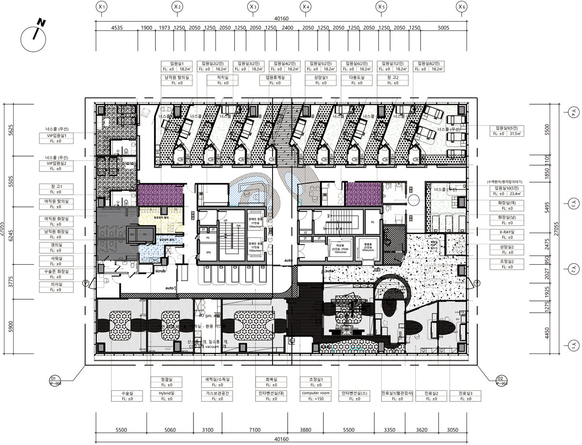 2층에선 창가의 휴식 공간 이외에도 노태린 앤 어소시에이츠 특유의 감성적이며 기능적인 디자인을 엿볼 수 있다. 공간별로 바닥의 컬러를 다르게 적용하고 개방성을 느낄 수 있도록 계획해 환자가 편안한 마음으로 공간을 찾기 쉽게 했다. 또 석고보드와 LED를 활용해 만든 천장의 장식은 마치 부드러운 구름을 보는 듯 기분까지 편안하게 만들어 준다. 전체적으로 원목의 자연스러운 색상을 살린 마감재를 적극적으로 활용해 대기 시간에도 지루 하거나 불편한 마음이 들지 않도록 배려했다. 벽돌과 콘크리트, 패턴 등 벽면에 사용된 다채로운 마감과 컬러, 독특한 조명이 차분한 공간에 유쾌하고 즐거운 분위기와 세련된 감성을 더한다. 특별히 디스플레이를 활용해 다양한 형상과 이미지를 전하는 대형 디스플레이 월은 밝고 활동적인 느낌을 주며 공간을 환하게 밝힌다.