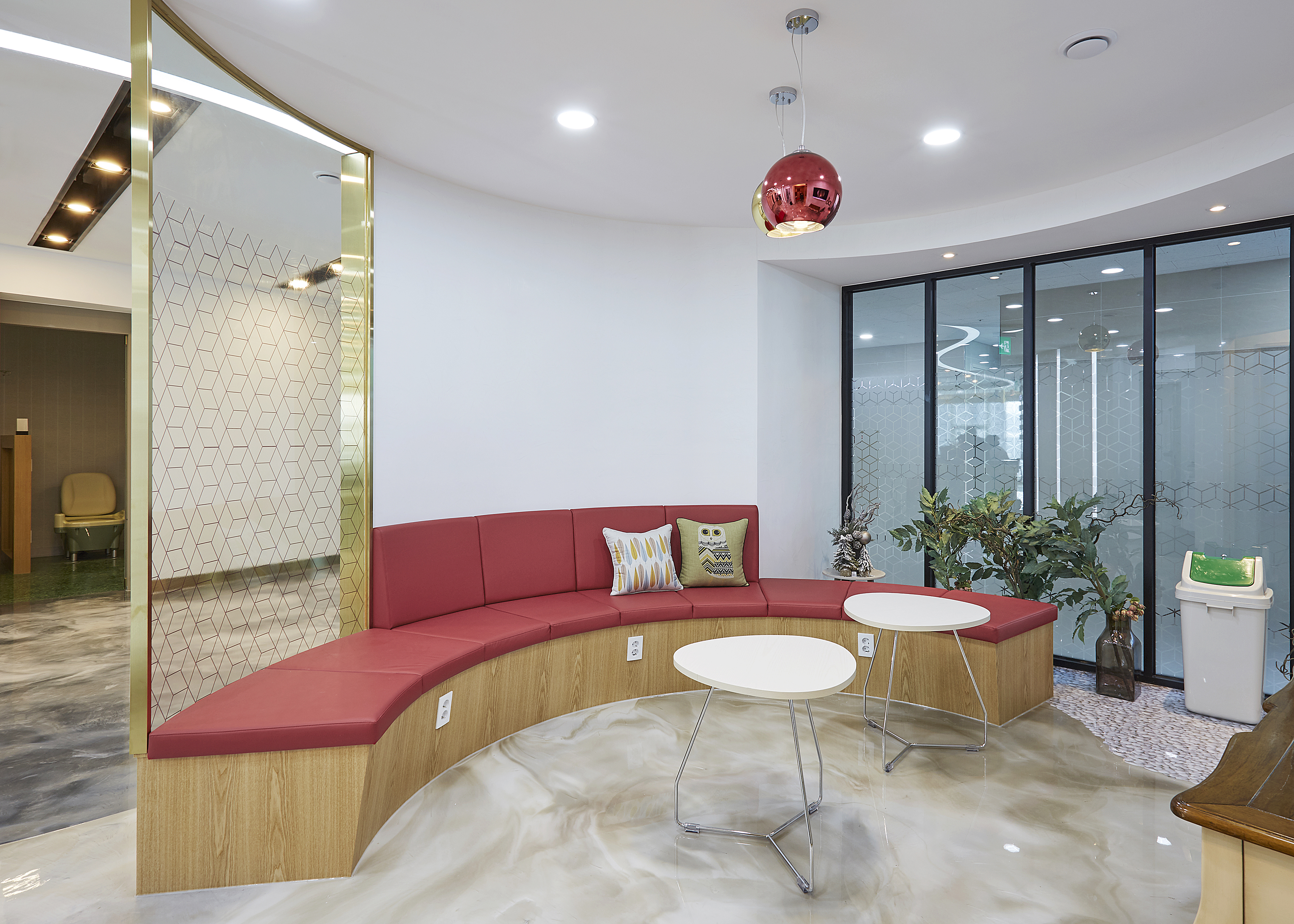 공간의 미적 가치는 ‘머뭄’입니다. 머뭄의 가치가 가장 먼저 실현되는 것은 ‘동선’입니다. 공간은 사람의 행동이 이루어지는 곳입니다. 골드만 비뇨기과는 병원 공간이라는 특성과 개인의 노출의 최소화를 원하는 환자들의 바람이 반영된 동선이 설계의 시작이었습니다. 사용자의 욕구 실현이 반영된 공간 설계는 치료과목의 특성으로 인한 남녀 환자의 내원과 내부 이동의 자유로움을 보장하기 위한 ‘웨이파인딩’으로 동선을 제공했습니다. 또한 사전 워크숍으로 공간의 사용자들이 참여한 사용자 욕구의 수렴 과정을 진행하였습니다. 사용자 참여는 병원 공간의 완성 주체로 자각하는 효과 및 공간 사용의 효율성까지 확보하게 됐습니다. 수술실과 입원실의 연결과 남녀 입원실 분리 등 신속한 이동과 사생활 보장, 진료진의 동선 분리, 환자의 심리적 안정을 위한 곡선 디자인과 천정의 힐링 이미지 배치 등 사용자의 개별적 나즈를 통합한 공간이 완성됐습니다. 비뇨기과의 치료 절차에 따른 화장실 사용을 고려하여 이미지 컬러테라피의 활용으로 바다와 꽃의 3D 그래픽으로 구현과 음악 청취 등 시청각적 치유 효과로 심리적 안정감을 제공했습니다. 혁신과 상상의 가치는 신뢰와 편리성, 평온함과 치유의 가치를 제공한 공간으로 확장됐습니다.