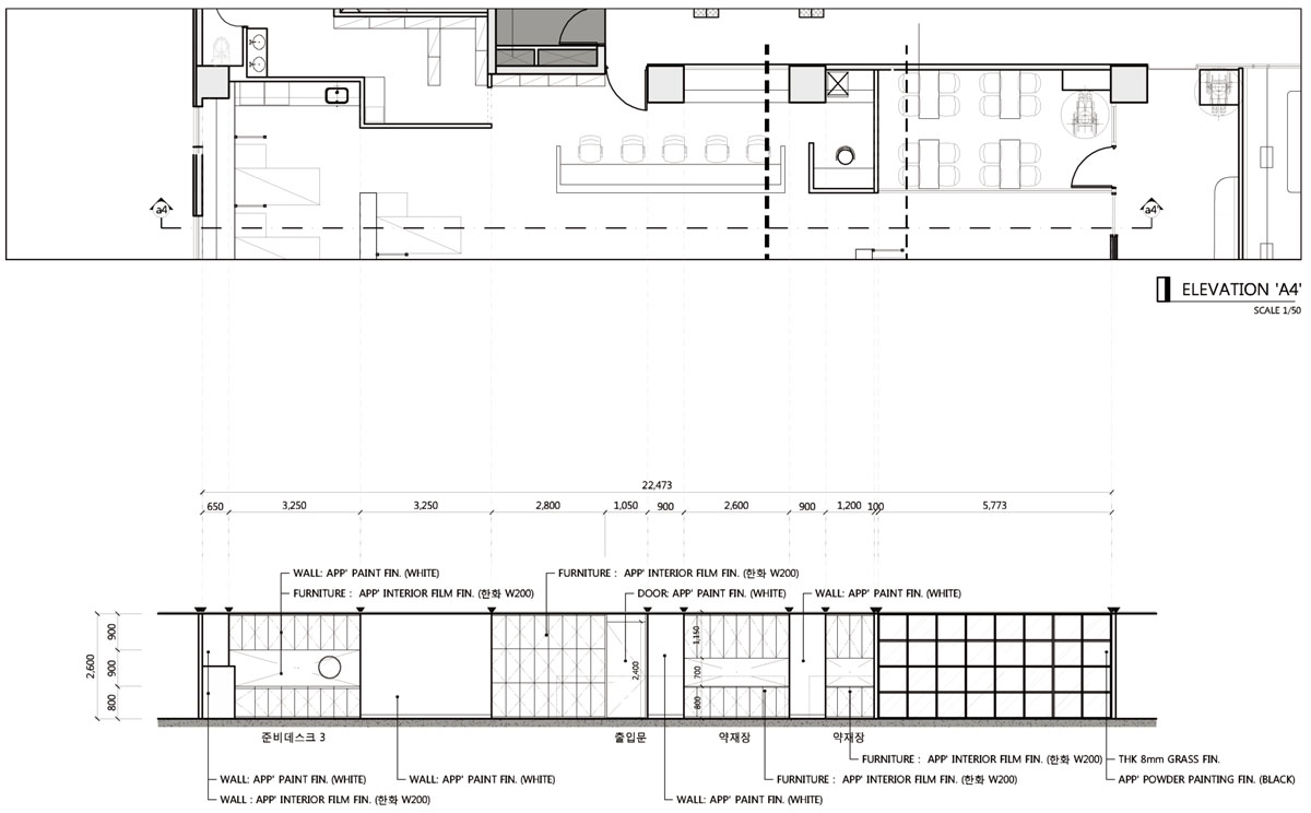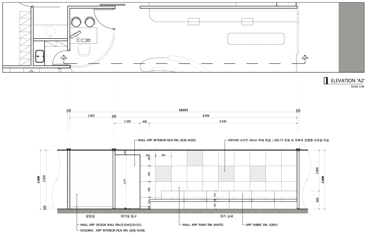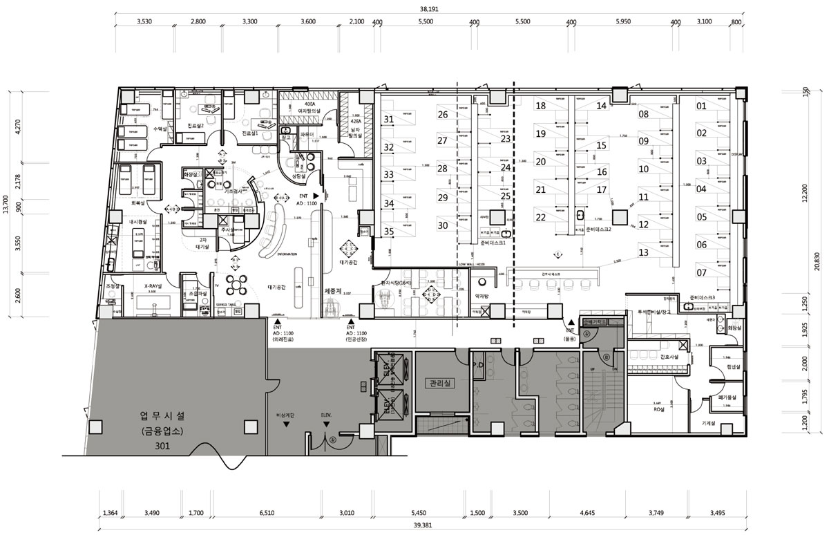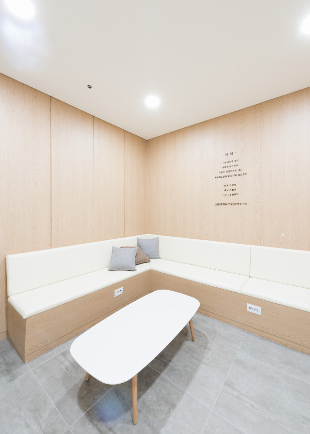 천장의 곡선을 따라 설치된 조명과 벽면과 같은 모양의 조명이 공간 곳곳에 생동감이 느껴지는 리듬을 연출한다. 실내에는 리듬을 따라 자연스러운 동선이 생겨난다. 상담실은 통 유리로 구성해 열린 공간으로 상담고객의 긴장감을 완화시킨다. 인공신장실은 초입에는 또 다른 로비를 둬 외래 진료실과 분리했다. 외래 진료실을 거칠 필요 없어 이용객의 편의를 더한다.