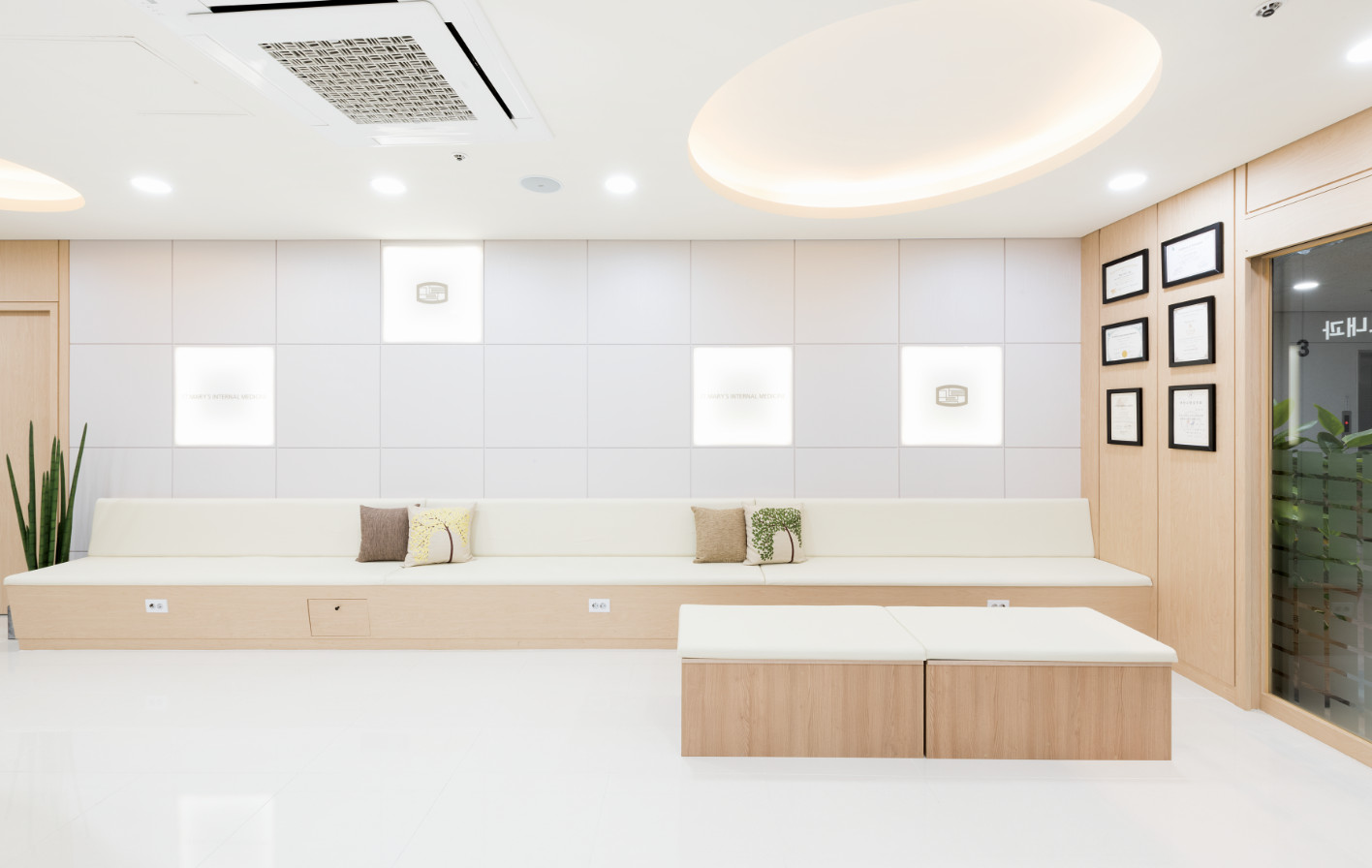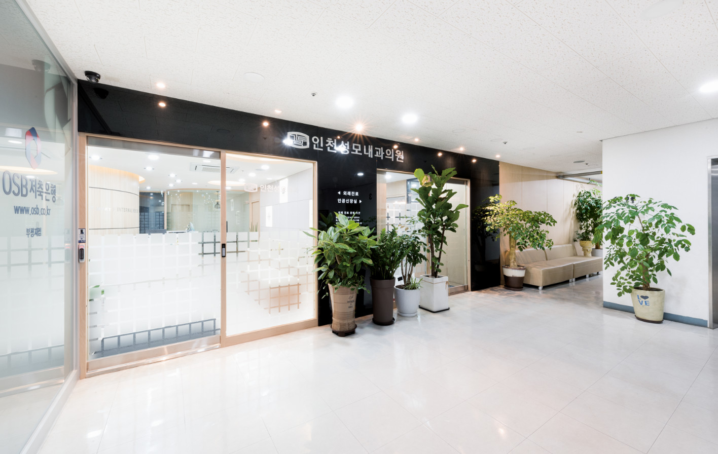 부평구에 위치한 인천성모내과의원은 건강보험심사평가원이 발표한 혈액투석 적정성 평가에서 인천지역 의원급 의료기관 유일하게 1등급으로 평가받았다. 외래 진료와 혈액여과 투석을 할 수 있는 인공신장실이 갖춰진 위 병원은 전체적으로 자연친화적인 소재와 둥근 곡선으로 디자인되어 우아함과 편안한 분위기로 고객을 맞는다. 전체적으로 화이트 톤과 은은한 조명으로 디자인된 공간은 병원에 대한 무거운 이미지를 중화시키며 쾌적한 실내를 보여준다.